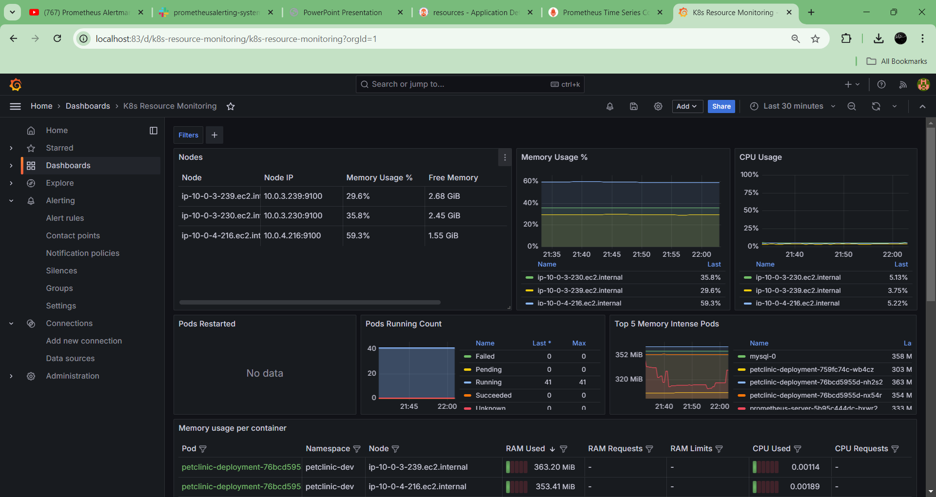 - Built a fully observable Kubernetes platform using Prometheus and Grafana, enabling real-time cluster and application monitoring.